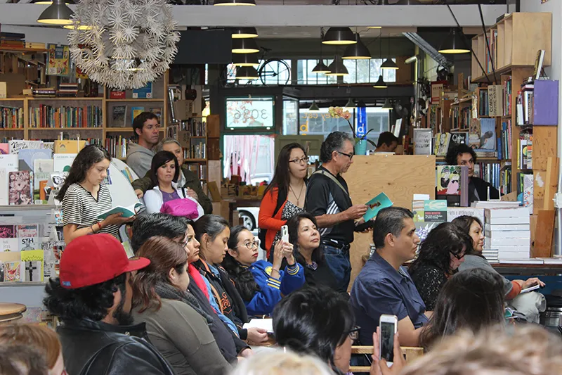 This year the momentum continues, with another two full days of free events, beginning on Friday, May 20, with an opening ceremony and staggered readings occurring throughout what was this year named the 24th Street Latino Cultural District. Saturday, May 21, features a children’s workshop for young poets, and, during brunch at Precita Eyes, the premiere screening of recently acquired archival footage from the 1973 Flor y Canto, which in addition to a young Murguía shows a young U.S. Poet Laureate Juan Felipe Herrera.