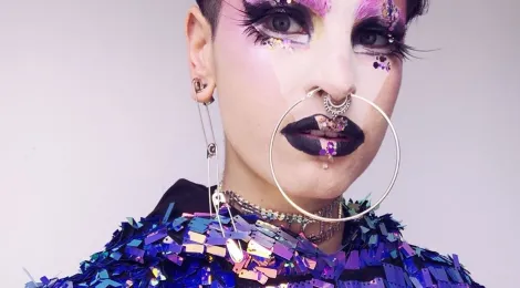 I got some black Doc Martens boots right now. Fashion is an essential part of who I am and it is crucial to my own self-expression; it is how I tell myself, I am here. Clothes let me move beyond the blandness of normativity. I wear extravagant fashions: wigs, big platforms, rhinestones all over my face, eyelashes bigger than my head. Seeing myself beyond what I’ve been taught is possible to inhabit in a body. Beyond the boundaries of the gender imposed on me, on us, there’s that endless possibility that comes with gold lamé and a pair of kitty heels. That playfulness. The joy that I feel when I’m all done, the feeling of ecstatic celebration that is seeing other people dressed extravagantly is essential to my own survival.